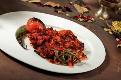 صدر دجاج مسحب منقوع بصلصة البندورة و الفلفل الحار مشوي على الفحم